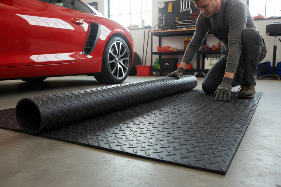 Diamond Tread Garage Flooring - PVC Rubber Rolls Anti-Fatigue