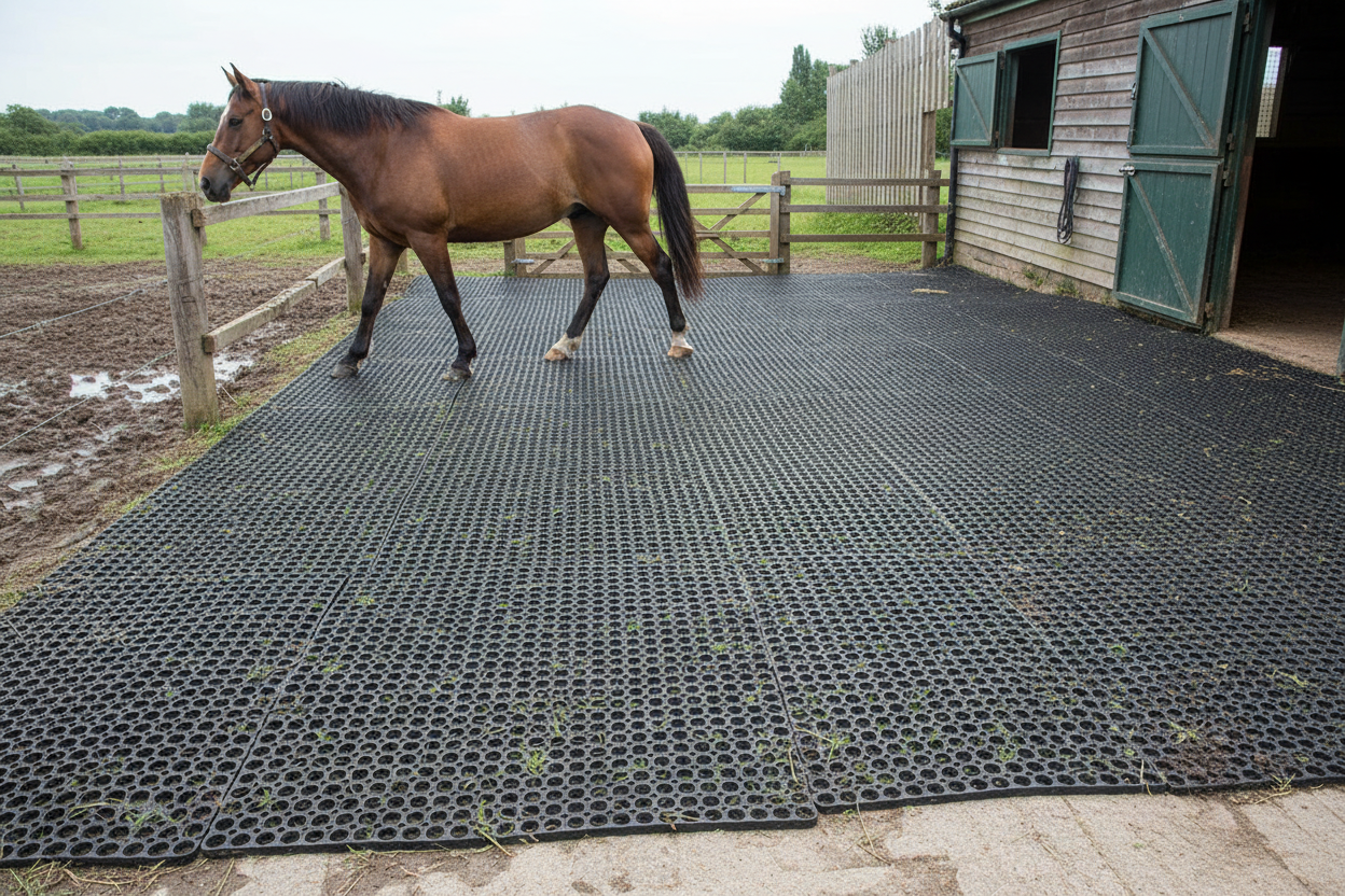 Premium Gateway rubber grass mats designed for equestrian applications. Our heavy-duty mats provide superior durability for horse stables, paddocks, and high-traffic equestrian areas - the trusted choice for horse owners and stable yards across the UK.